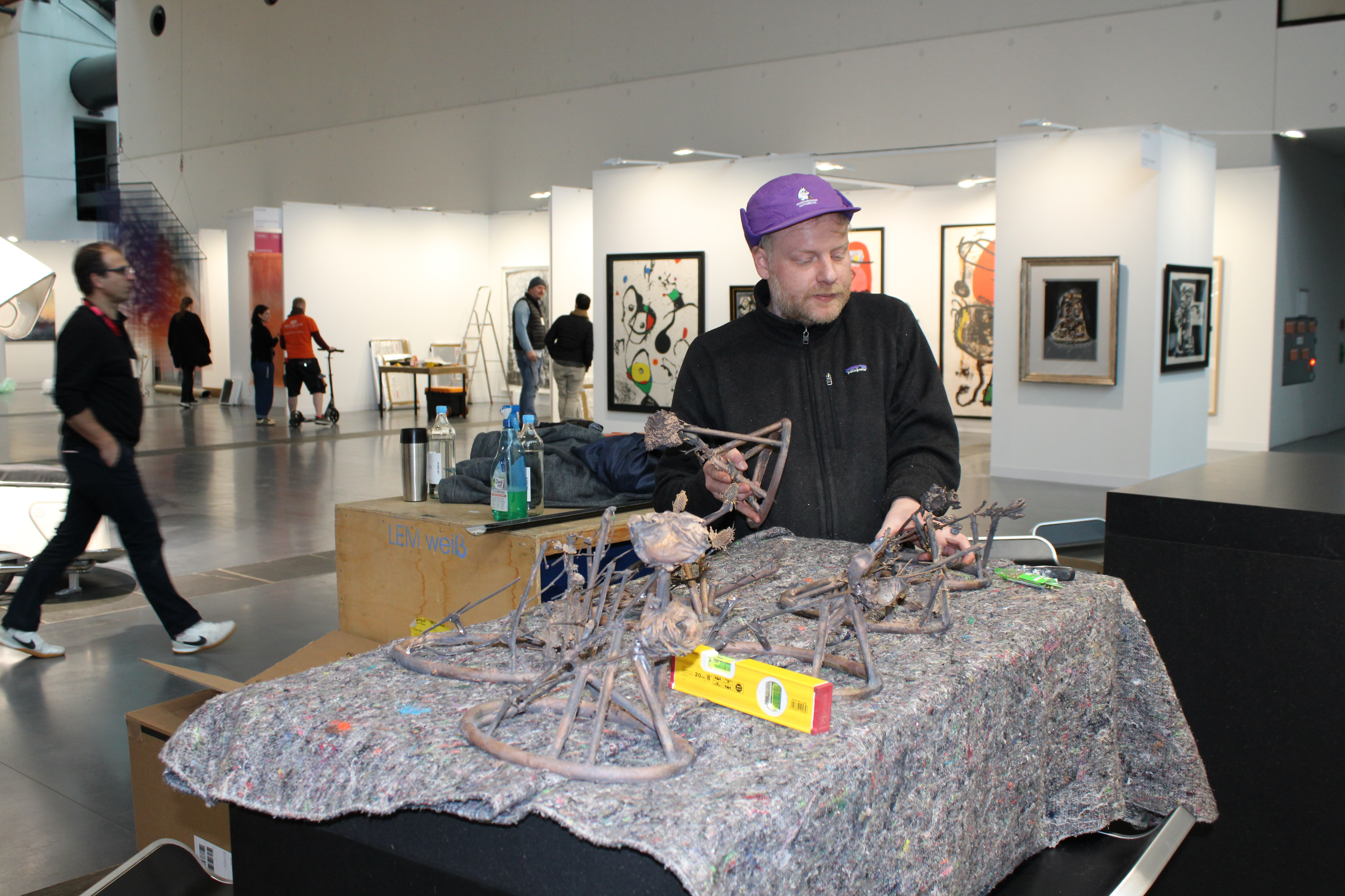 Am Dienstag vor der Eröffnung herrschte in den Hallen geschäftiges Treiben. Kisten wurden ausgepackt, Werke gehängt, Sockel ausgerichtet, Licht gesetzt. Der Aufbautag ist für Galerien und Künstler einer der intensivsten Momente der Messewoche – konzentriert, körperlich fordernd und zugleich voller Vorfreude.