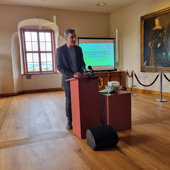 Nach der Begrüßung durch Daniel Petri, Geschäftsführer der Oelsnitzer Kultur GmbH referierte Herr Dr. Thomas Overdick, Geschäftsführer des Museumsverbandes für Niedersachsen und Bremen e.V. In seinem Vortrag zum Thema: „Sammlung statt Sammelsurium: Zur strategischen Profilierung von Sammlungen“. Sein Vortrag erläuterte anschaulich die Notwendigkeit von Sammlungskonzepten bis hin zur Überlegung zum Entsammeln.