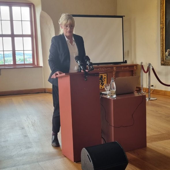 Nach einer Pause ging es spannend weiter. Frau Schemmerich, Leiterin Museum Schloss Burg, berichtete in ihrem Referat: „Wo Pflicht und Kür zur Profilschärfung beitragen“ eindrucksvoll aus der Arbeit des Sammlungskonzeptes auf Schloss Burgk. Frau Reitz, Leiterin Museum Schloss Voigtsberg vollendete die Vortragsreihe mit ihrer Darstellung zum Thema: „Plötzlich Erbe. Möglichkeiten und Herausforderungen einer Nachlassübernahme“. Anhand von detaillierten Bildern und Schilderungen erläuterte sie die große Herausforderung einer Nachlassübernahme.