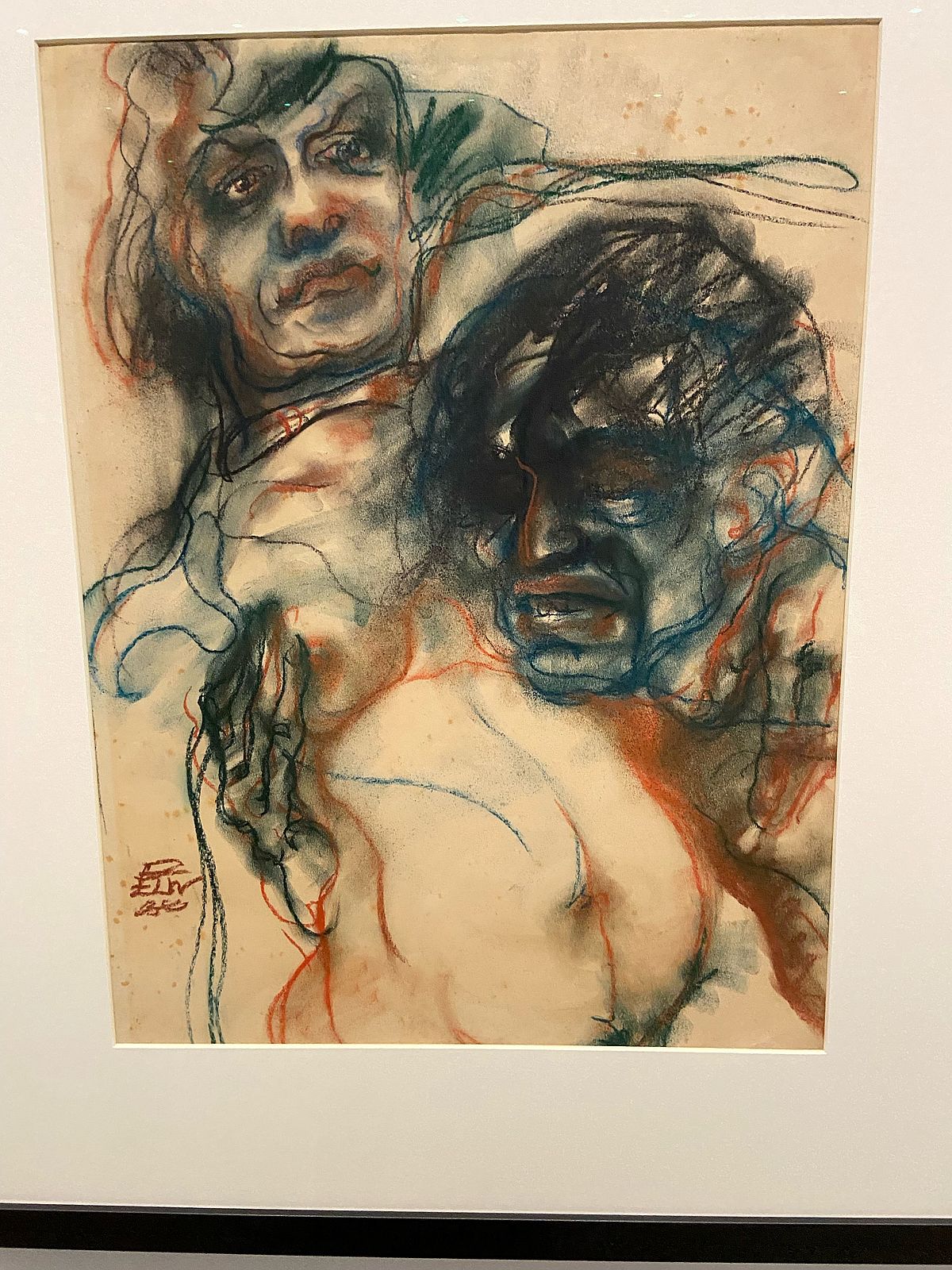 Nein, die Arbeiten von Lohse-Wächtler sprechen eine andere Sprache, sie zeugen von einer hochsensiblen Persönlichkeit, die sich im Zeichen einer Selbstermächtigung unermüdlich und gegen allerlei Widerstände in eine Männerdomäne vorgearbeitet hat. Dabei ist sie – statt einer fleischlich-erotischen Zuspitzung wie bei den männlichen Kollegen – an der psychologischen Durchdringung des Dargestellten interessiert. So spiegeln sich in den Gesichtern der Huren oftmals die harten Regeln des „Gewerbes“ wider. Und bei so mancher Paardarstellung steht der Verletzlichkeit der Seele oder der Leere im Blick der Frau die unbändige Gier ihres männlichen Partners gegenüber.