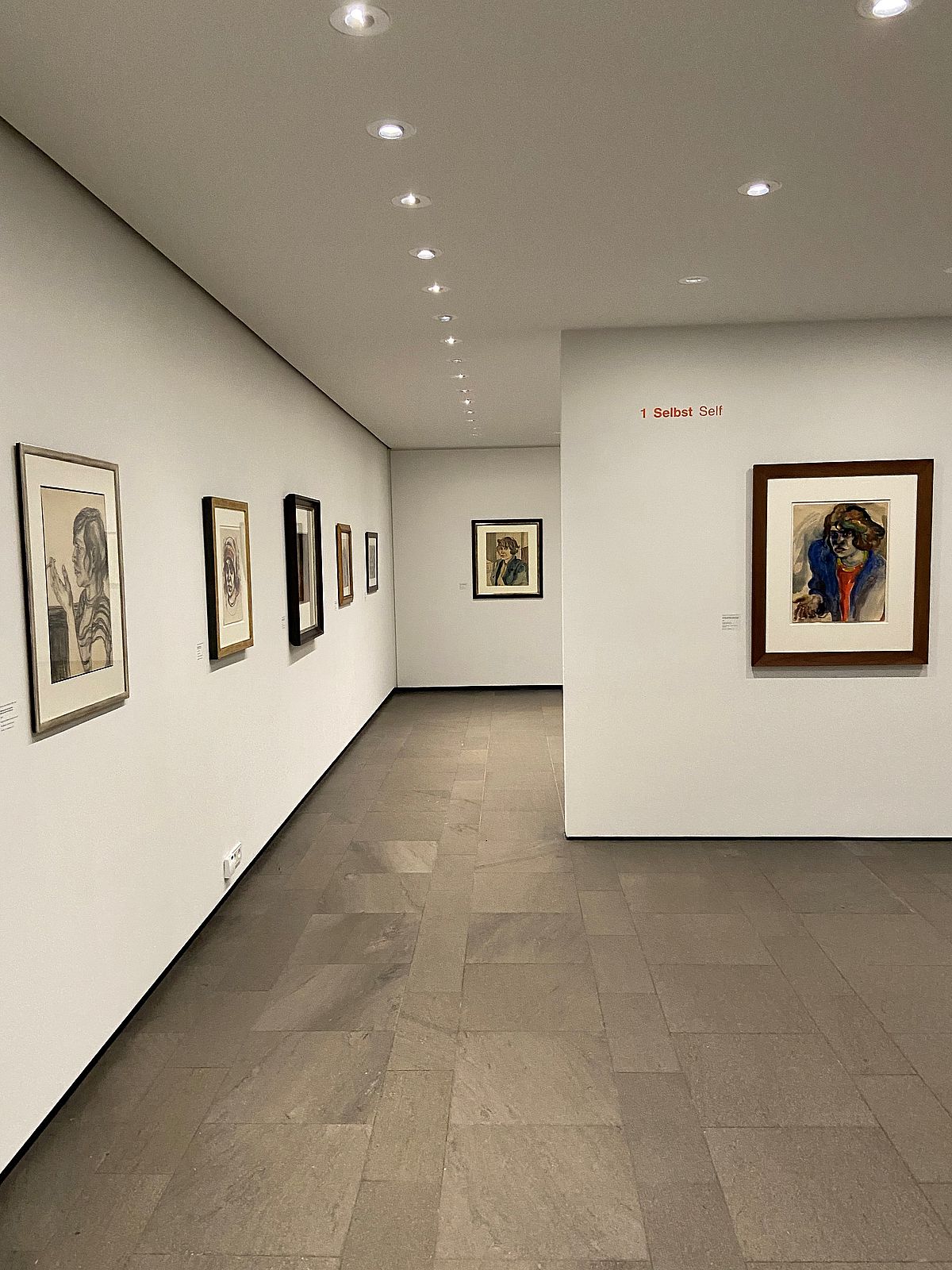 In ihren vielen Selbstbildnissen, die sie in dichter Folge vor allem um 1930 geschaffen hat, sehen wir eine Frau, die sich ungeschönt und eindringlich immer wieder selbst befragt.