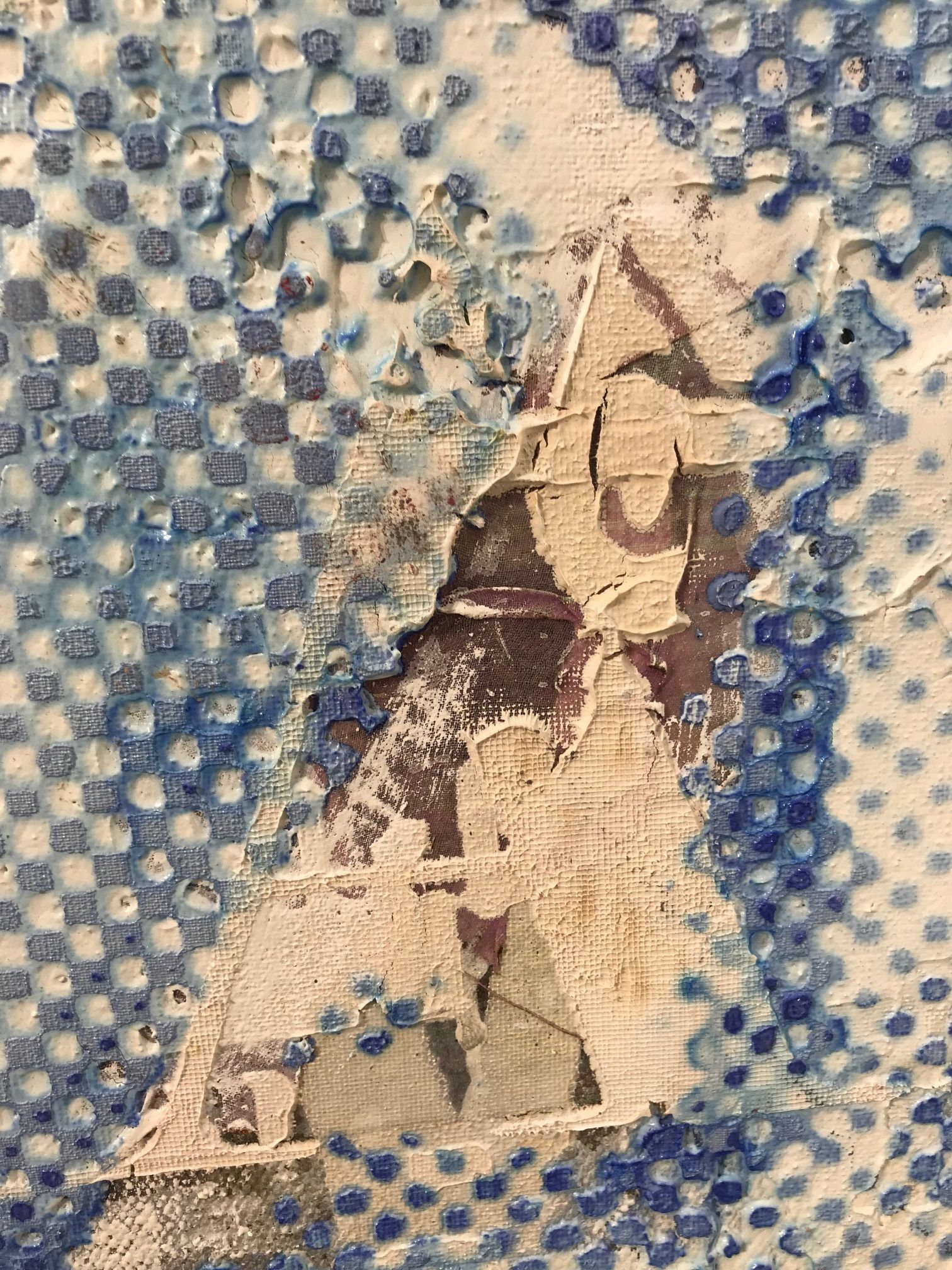 Die Fassade oder in dem Fall das Bild "bröckelt". Die Situation der Frauen und auch die Vergänglichkeit spielen eine große Rolle. Was gibt uns die Künstlerin mit auf dem Weg, wenn das Kunstwerk bei uns in der Wohnung hängt?