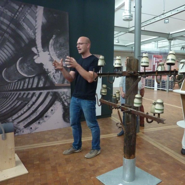 Bild 1-4: Besuch der Ausstellung "Erlebnis Industriekultur" in der Pößnecker Shedhalle mit Herrn Christoph - Kurator der Ausstellung von der Uni in Jena