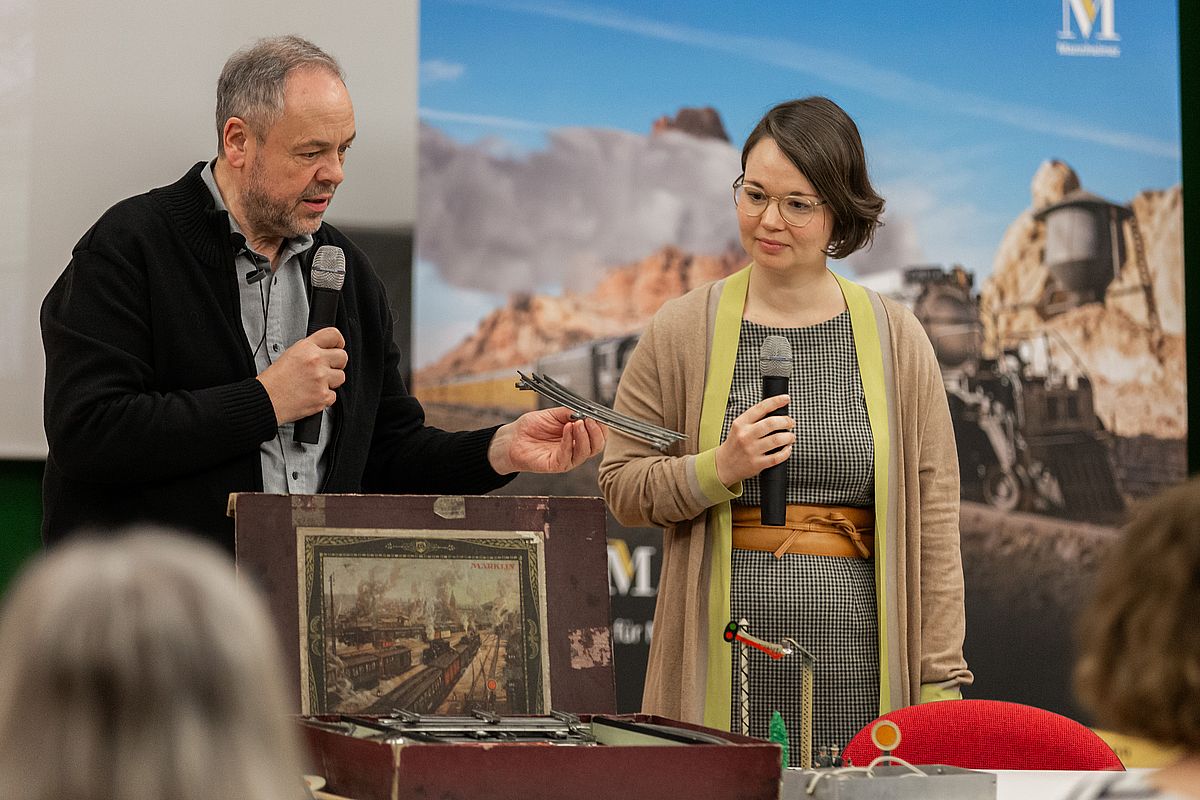 Begleitend zur Ausstellung "Kinderträume. Spielen-Lernen-Leben um 1900" fand in den rem eine besondere Premiere statt: Zahlreiches historisches Spielzeug, darunter Modelleisenbahnen, Puppen, Blechspielzeug und Stofftiere wurden von Götz Seidel vom Ladenburger Spielzeugauktionshaus und Dieter Käßer, Spielzeugsachverständiger und Vorsitzender des Vereins für historisches technisches Spielzeug e.V. an diesem Nachmittag in den Räumlichkeiten des Zeughauses begutachtet.