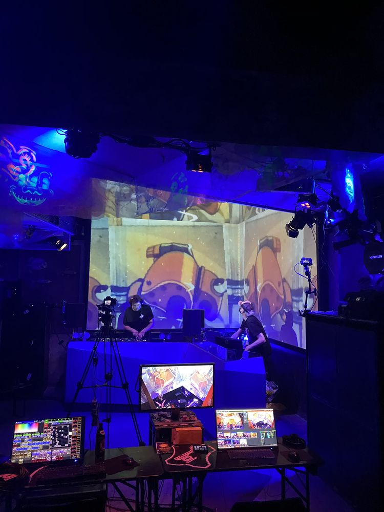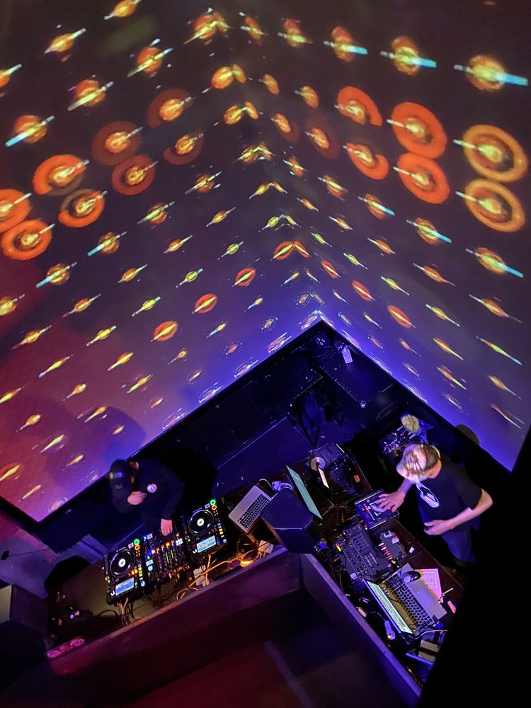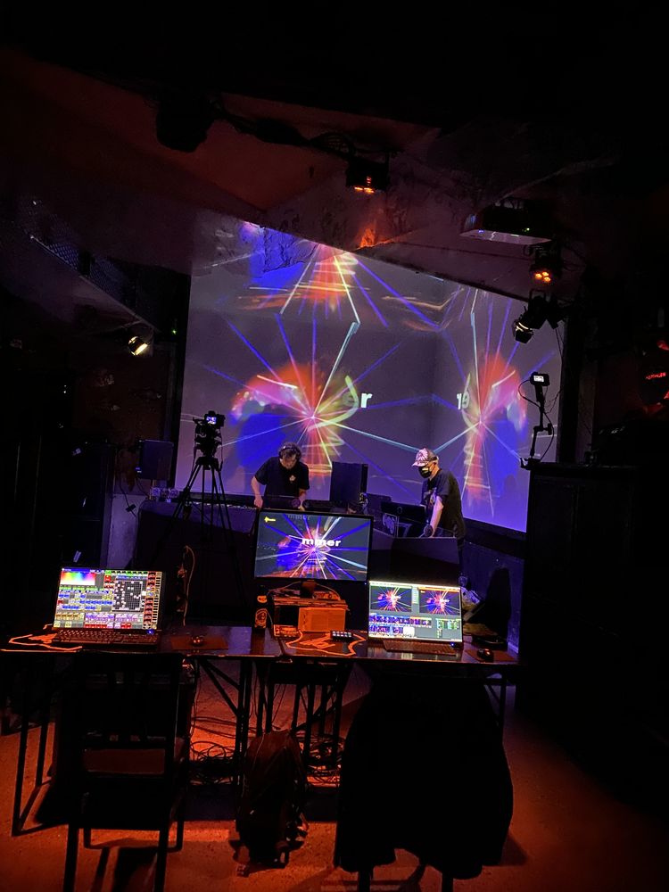 Peter Becker am VJ-Pult mit seinen Visuals im Hintergrund (Foto: Stella Becker)